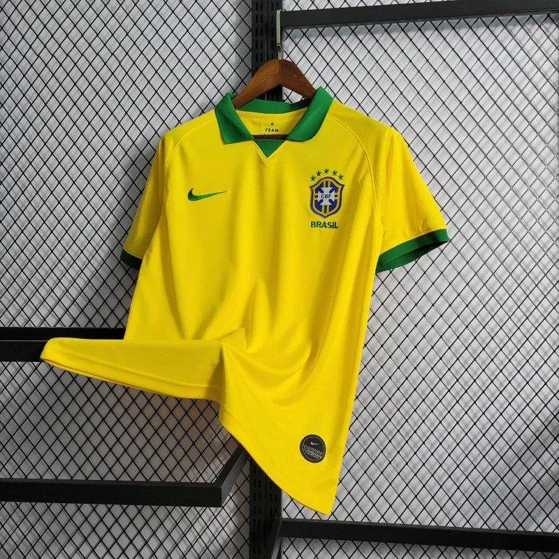 A camisa titular do Brasil 2019/20 celebra os 100 anos do primeiro título da Seleção, conquistado na Copa América de 1919. O design resgata o clássico modelo com gola polo e detalhes inspirados na história do futebol brasileiro. Feita com tecnologia Nike Breathe, a peça proporciona respirabilidade e conforto, mantendo o corpo seco mesmo nos momentos de maior intensidade. O escudo bordado no peito reafirma o orgulho de vestir as cores do Brasil.