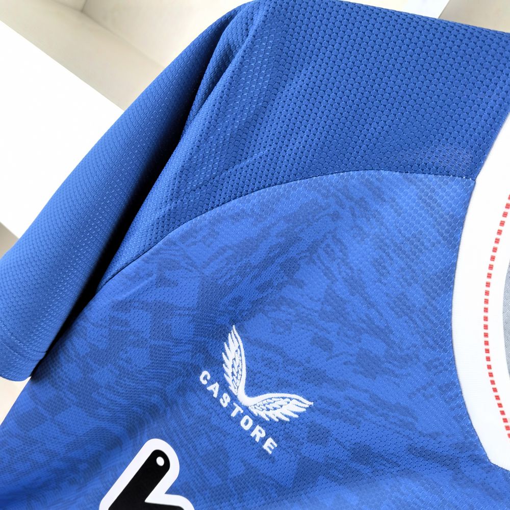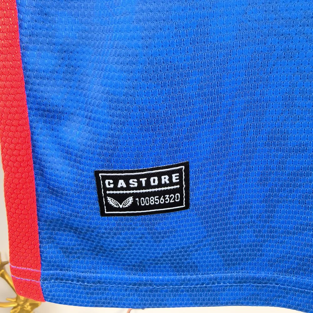 • O escudo do Athletic Bilbao está bordado no lado esquerdo do peito, enquanto o logotipo da Castore está presente na parte inferior direita.