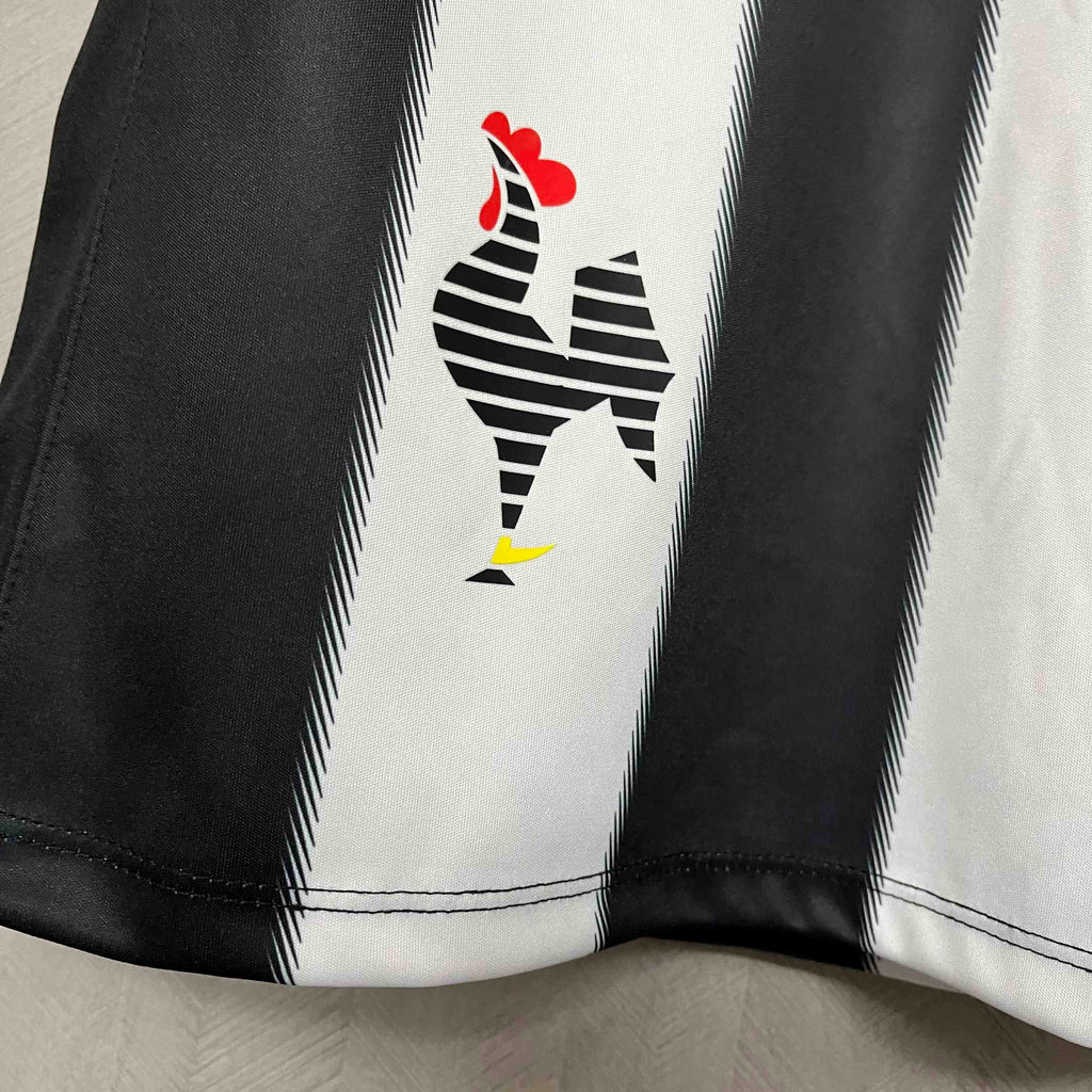• Design retrô autêntico: Replicando fielmente o uniforme histórico de 2013, com listras pretas e brancas vibrantes, a camisa retrô te transporta para o campo de batalha onde o Galo ergueu a taça da Libertadores.