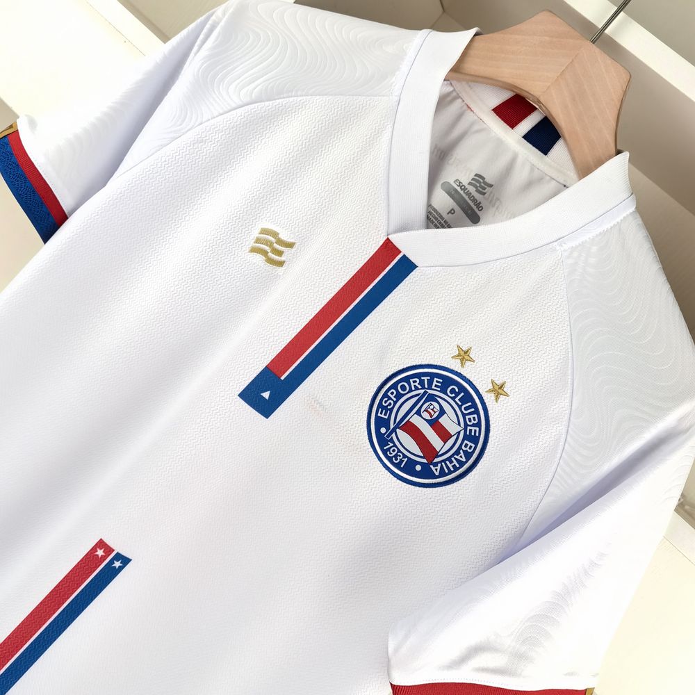 A camisa titular do Tricolor de Aço, predominantemente , apresenta um design distinto com uma faixa vertical tricolor que percorre a região central da peça. Esta faixa é interrompida na barriga para a aplicação do patrocínio master da Esportes da Sorte. A camisa também incorpora elementos simbólicos: referências à bandeira do Estado, incluindo o triângulo, e as conquistas nacionais do clube em 1959 e 1988, que são representadas por estrelas. Tem gola V na cor . Os punhos, que combinam as cores e , trazem na parte superior menções alternadas aos títulos brasileiros de 1959 e 1988. Apresenta o escudo do Bahia no lado esquerdo do peito, enquanto o logo da Esquadrão aparece no lado direito em dourado. Na parte inferior direita, há um selo com o mote da coleção deste ano, "Paixão Que Vibra".