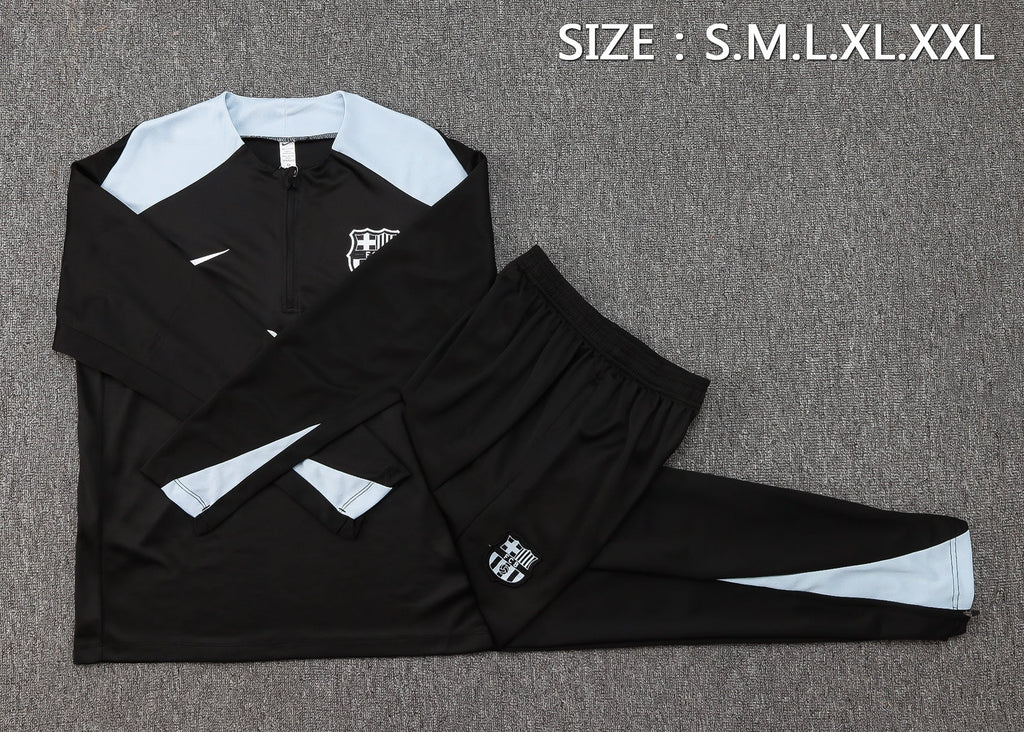O Agasalho Treino Barcelona Preto 2024/25 - Masculino é a escolha ideal para os adeptos que procuram aliar conforto e estilo enquanto apoiam o Barça. Com um design elegante em preto, este conjunto destaca o icónico escudo do Barcelona em cores vibrantes no peito e na perna, proporcionando um contraste moderno. O logótipo da Nike em branco também está presente, assegurando a autenticidade e qualidade da marca. A jaqueta possui fecho de zíper na gola, oferecendo conveniência no uso diário ou durante treinos. As calças acompanham o estilo com um ajuste confortável e elástico na cintura, garantindo liberdade de movimento e um visual desportivo.