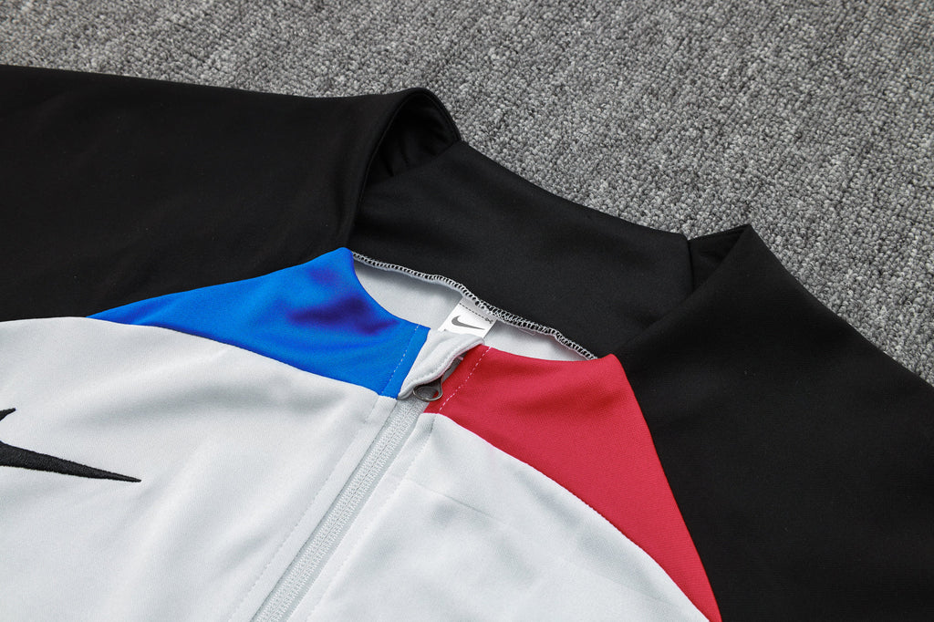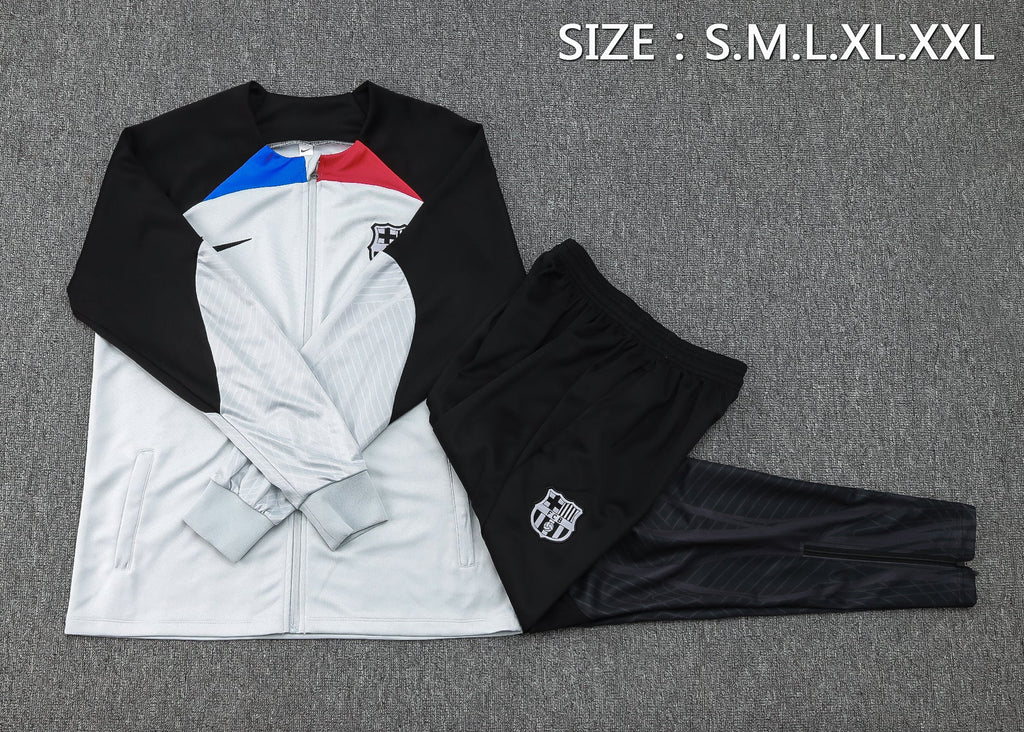 O Agasalho Treino Barcelona Cinza 2023/24 é a escolha ideal para os adeptos do Barça que valorizam desempenho e estilo. Feito com a tecnologia Nike Dri-FIT, este agasalho foi projetado para manter o corpo seco e confortável, afastando o suor da pele durante treinos ou uso casual. O design moderno em cinza conta com detalhes icónicos do Barcelona, como o escudo do clube bordado no peito e na perna, além do logótipo da Nike, garantindo autenticidade. A jaqueta inclui fecho de zíper completo e bolsos laterais, oferecendo praticidade e ajuste personalizado. As calças possuem cintura elástica para maior conforto e mobilidade, perfeitas para qualquer atividade física ou uso diário.