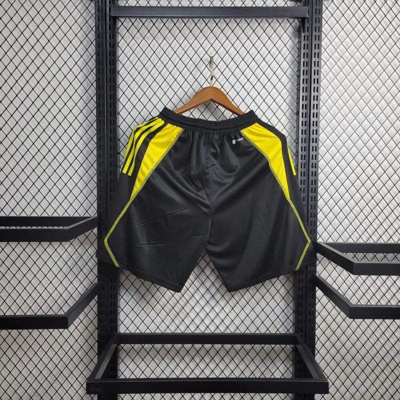 Bermuda de Treino do Flamengo 2023/24, uma peça oficial projetada para treinos e atividades físicas. Com o escudo clássico do Flamengo em destaque na cor amarela, combinado com o logotipo da Adidas, a bermuda oferece um design moderno e funcional.