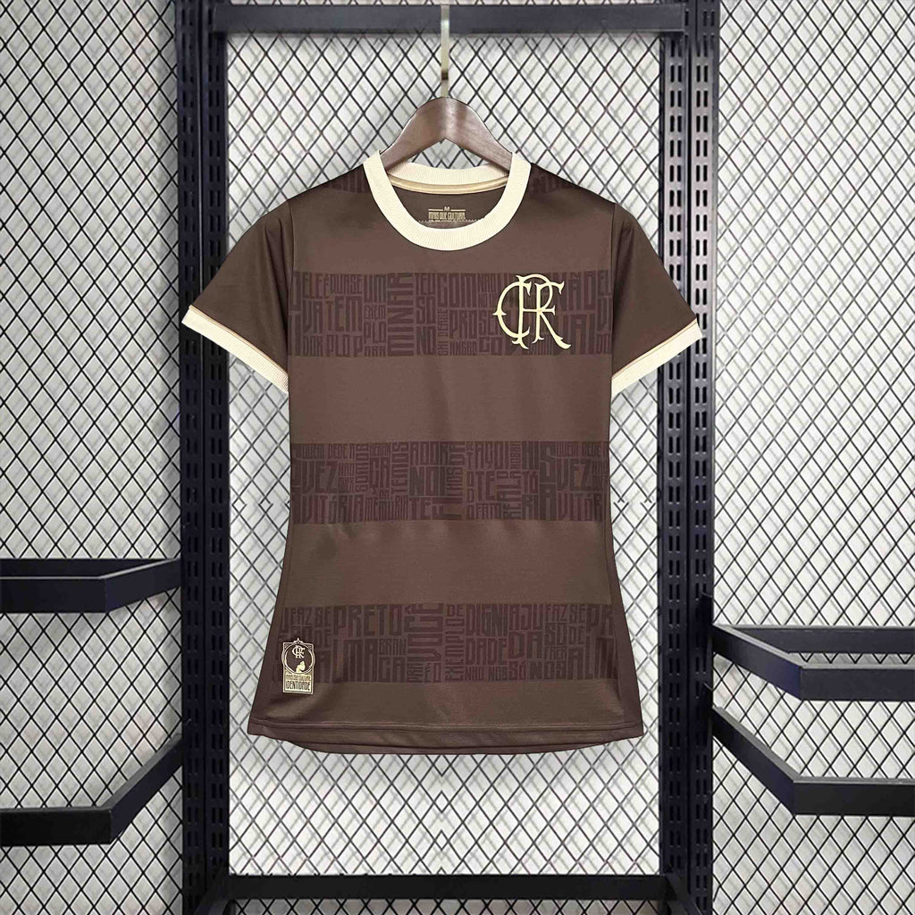A camisa especial do Flamengo para a Consciência Negra 2024 é uma homenagem à cultura e à história afro-brasileira, celebrando a luta pela igualdade e o respeito à diversidade. Com um design inovador, a camisa apresenta uma tonalidade marrom predominante, simbolizando as raízes africanas, enquanto o escudo retrô em dourado destaca a tradição do clube.