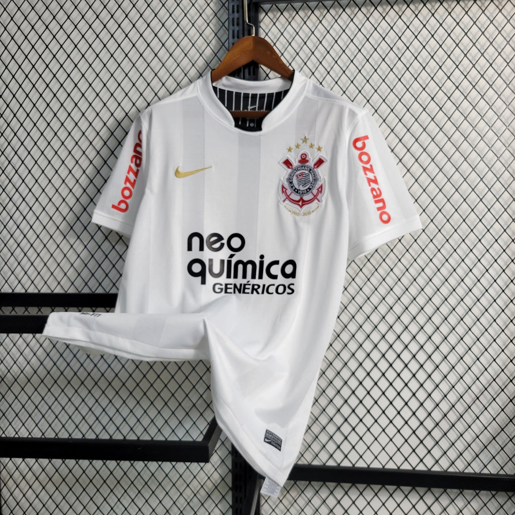 A camisa 1 do Corinthians de 2010 é um uniforme marcante, lançado em comemoração ao centenário do clube. Predominantemente branca, com gola careca, ela combina a simplicidade clássica com um design simbólico que celebra os 100 anos de história do Timão. O escudo do clube é bordado no peito, enquanto o logo do centenário, em dourado, aparece de forma especial, destacando o ano histórico.