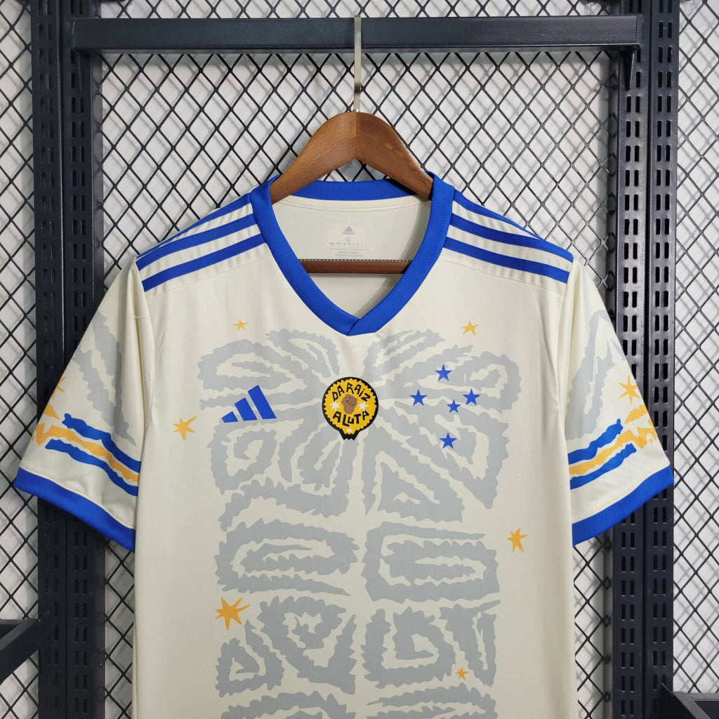 A Camisa Consciência Negra do Cruzeiro para a temporada 2023/24, intitulada "Da Raiz à Luta", foi lançada em parceria com a Adidas e o Laboratório Fantasma. Este manto especial celebra o Dia da Consciência Negra, destacando a ancestralidade e a beleza negra através de grafismos inspirados em tranças africanas, simbolizando resistência e conexão entre Brasil e África.