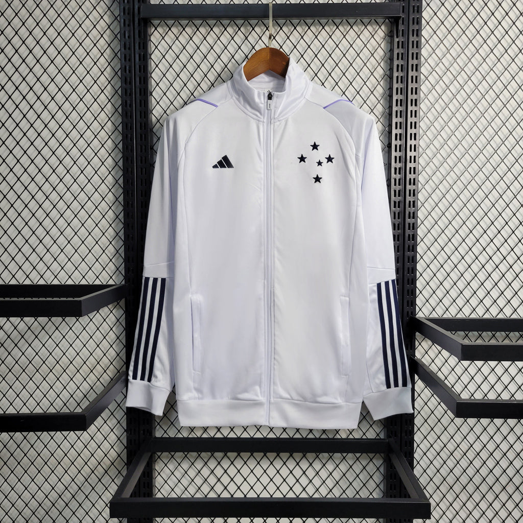 Vista a tradição e o estilo do Cruzeiro com a Jaqueta Branca 2023/24! Confeccionada em material leve e confortável, ela é perfeita para os dias mais frios, garantindo proteção sem perder a elegância. Com design moderno, traz detalhes sutis em azul e o escudo do Cruzeiro bordado no peito, exaltando sua paixão pelo time. Ideal para torcer, treinar ou compor um look casual com orgulho celeste!