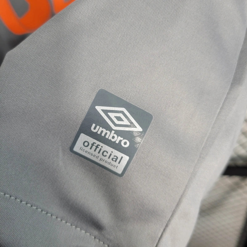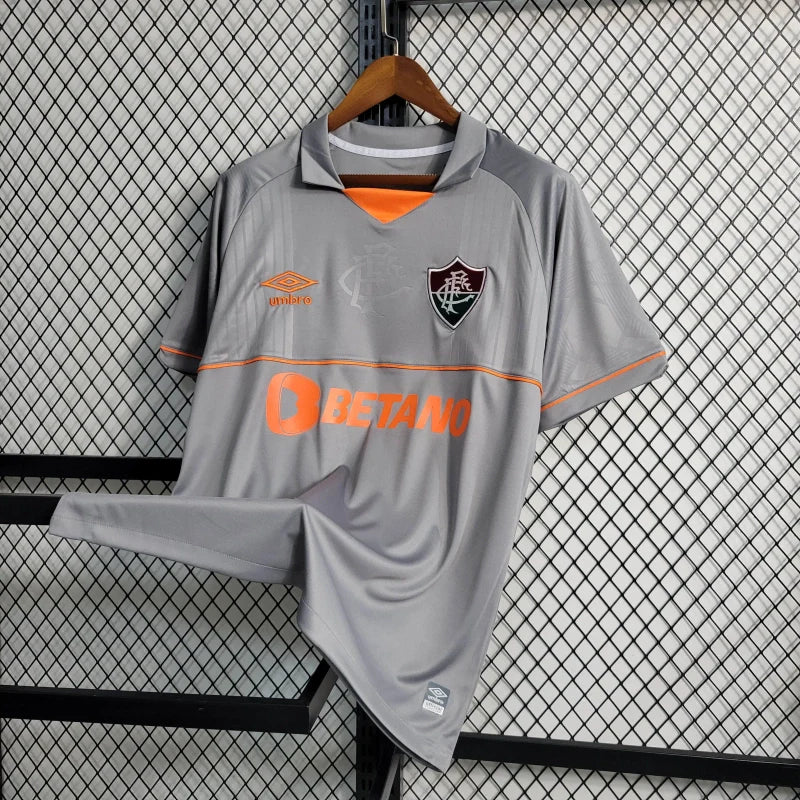 A Camisa de Goleiro Masculina do Fluminense para a temporada 2023/24, confeccionada pela Umbro, apresenta um design moderno nas cores cinza e laranja. Este uniforme é ideal para os torcedores que desejam demonstrar seu apoio ao Tricolor das Laranjeiras.
