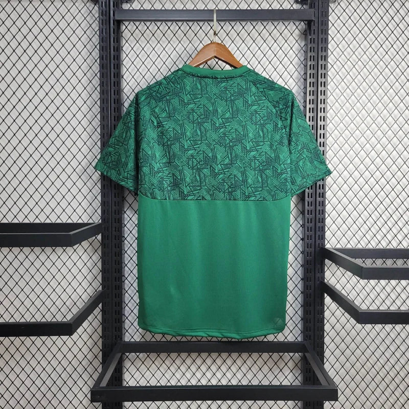 Design: Predominantemente verde, apresenta grafismos abstratos em toda a extensão da peça, conferindo um visual moderno e dinâmico.