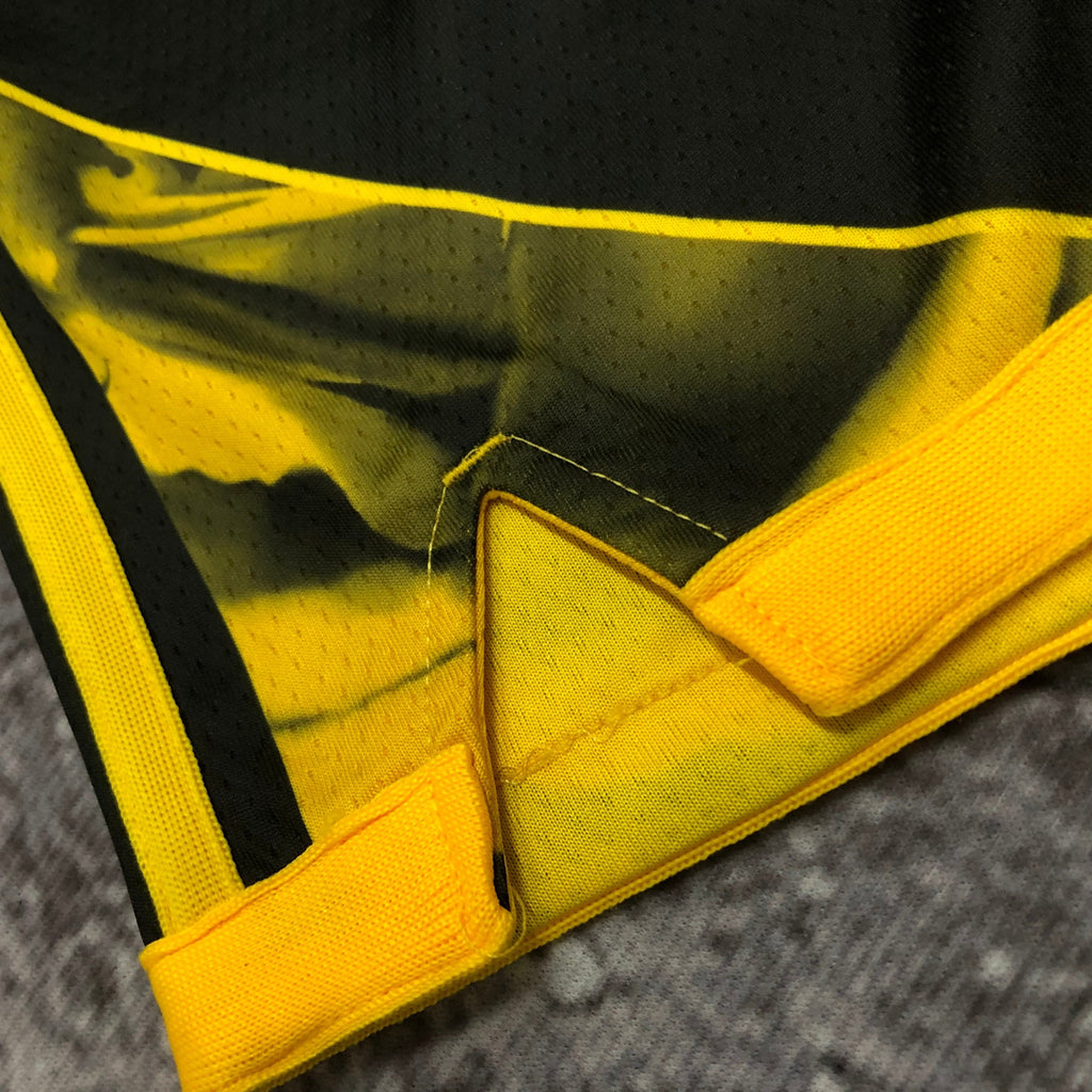 Os gráficos icónicos dos Golden State Warriors são apresentados com destaque, combinando com o design elegante e as cores contrastantes. A cintura ajustável garante um ajuste confortável e personalizado, enquanto o tecido de alta qualidade proporciona durabilidade e conforto durante o uso.