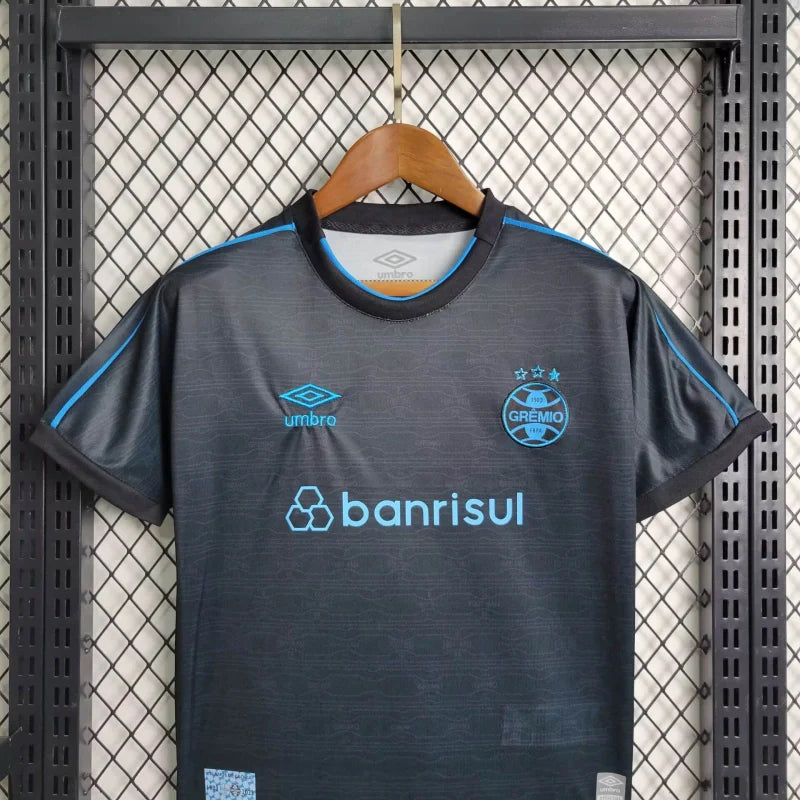 O Conjunto Infantil III do Grêmio para a temporada 2023/24, desenvolvido pela Umbro, celebra os 120 anos de história do clube gaúcho. Este kit é composto por uma camisa e um calção, ambos desenhados para exaltar o orgulho tricolor dos jovens torcedores.