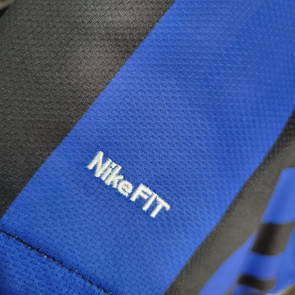 • Escudo e logótipo: O escudo da Inter é bordado no lado esquerdo do peito, enquanto o logótipo da Nike aparece no lado direito.
