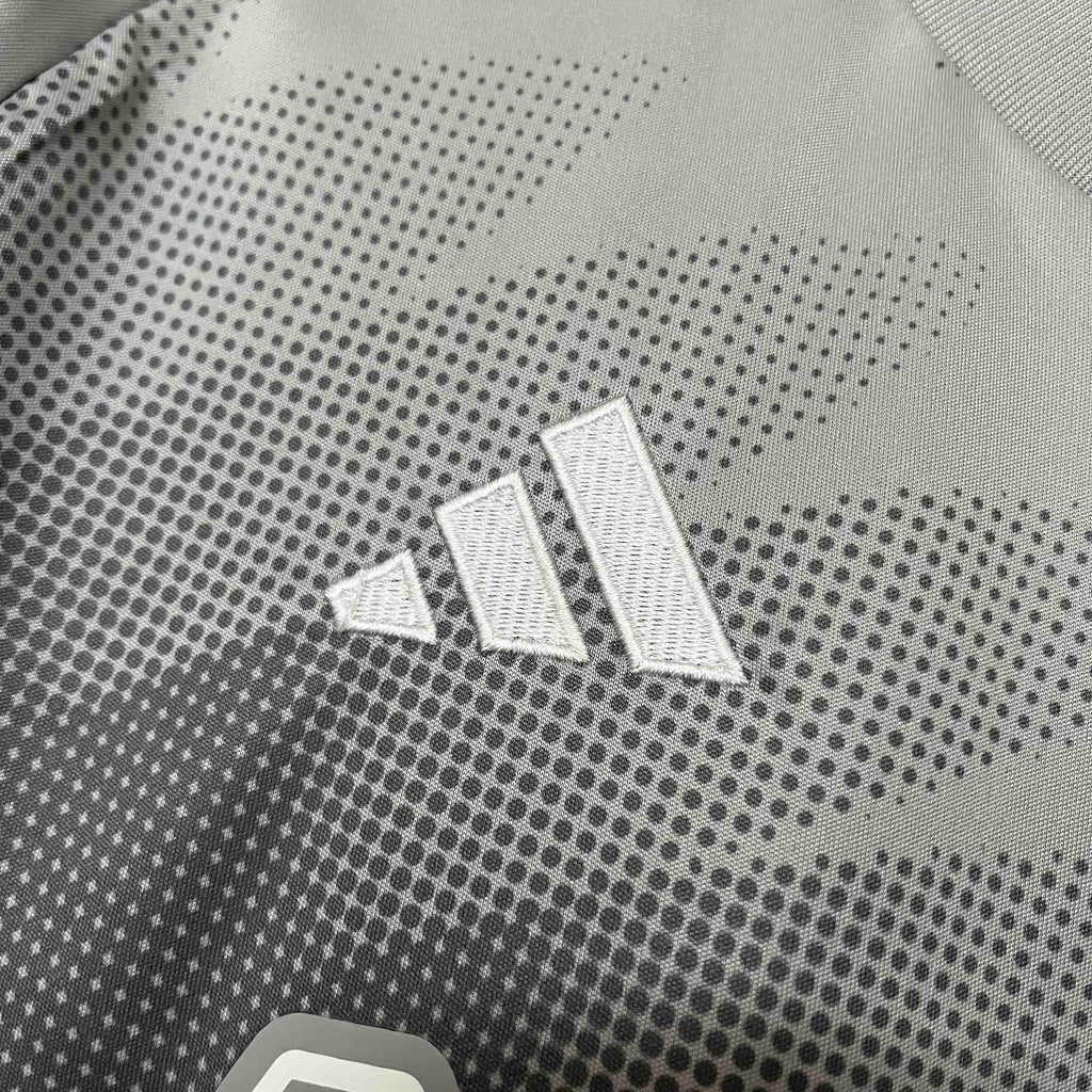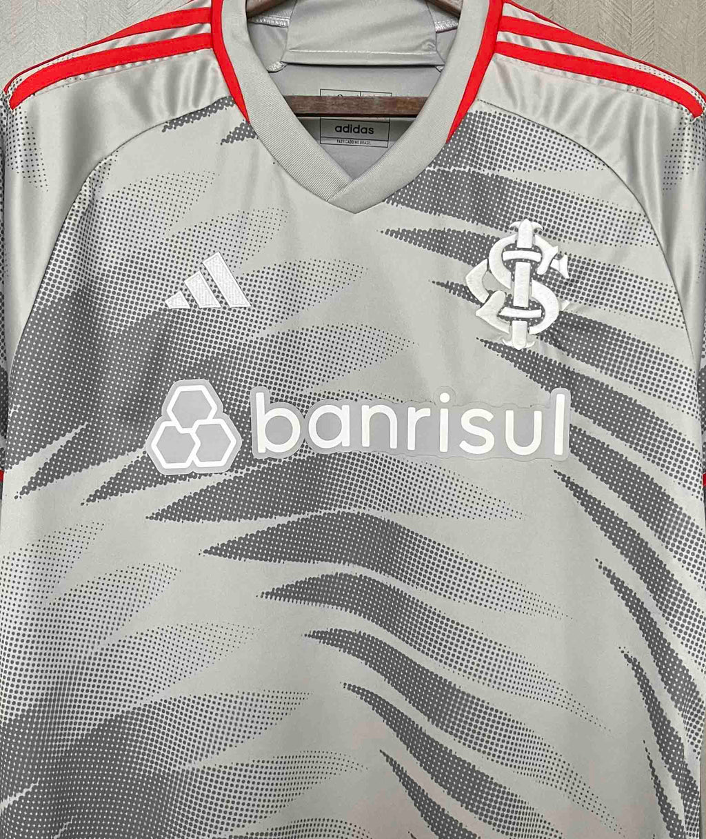 A terceira camisa do Sport Club Internacional para a temporada 2024/2025, desenvolvida pela Adidas, é uma homenagem à arquitetura do Estádio Beira-Rio, refletindo a identidade e a história do clube. O uniforme apresenta uma base cinza com formas alongadas e onduladas em um tom mais escuro, criando um efeito degradê que remete às membranas da cobertura do Beira-Rio.