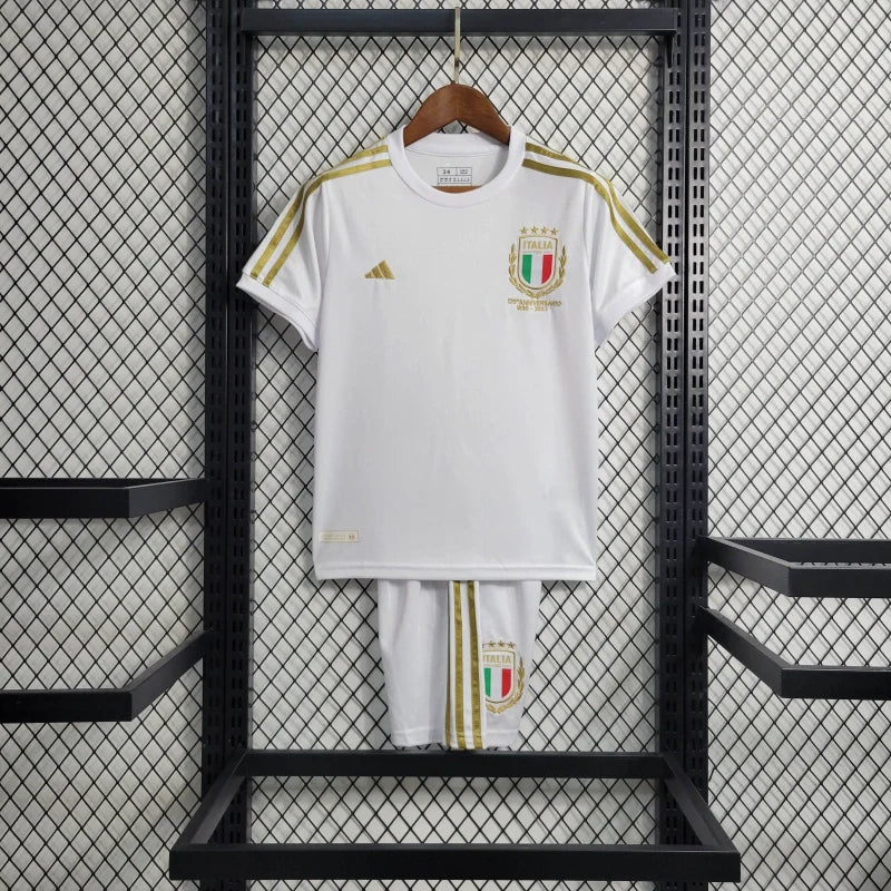 O Conjunto Infantil Itália 125 Anos é uma edição especial lançada pela Adidas para celebrar os 125 anos da Federação Italiana de Futebol (FIGC). Este kit é composto por uma camisa e um short, ambos confeccionados em tecido 100% poliéster, proporcionando leveza e conforto para os pequenos torcedores.