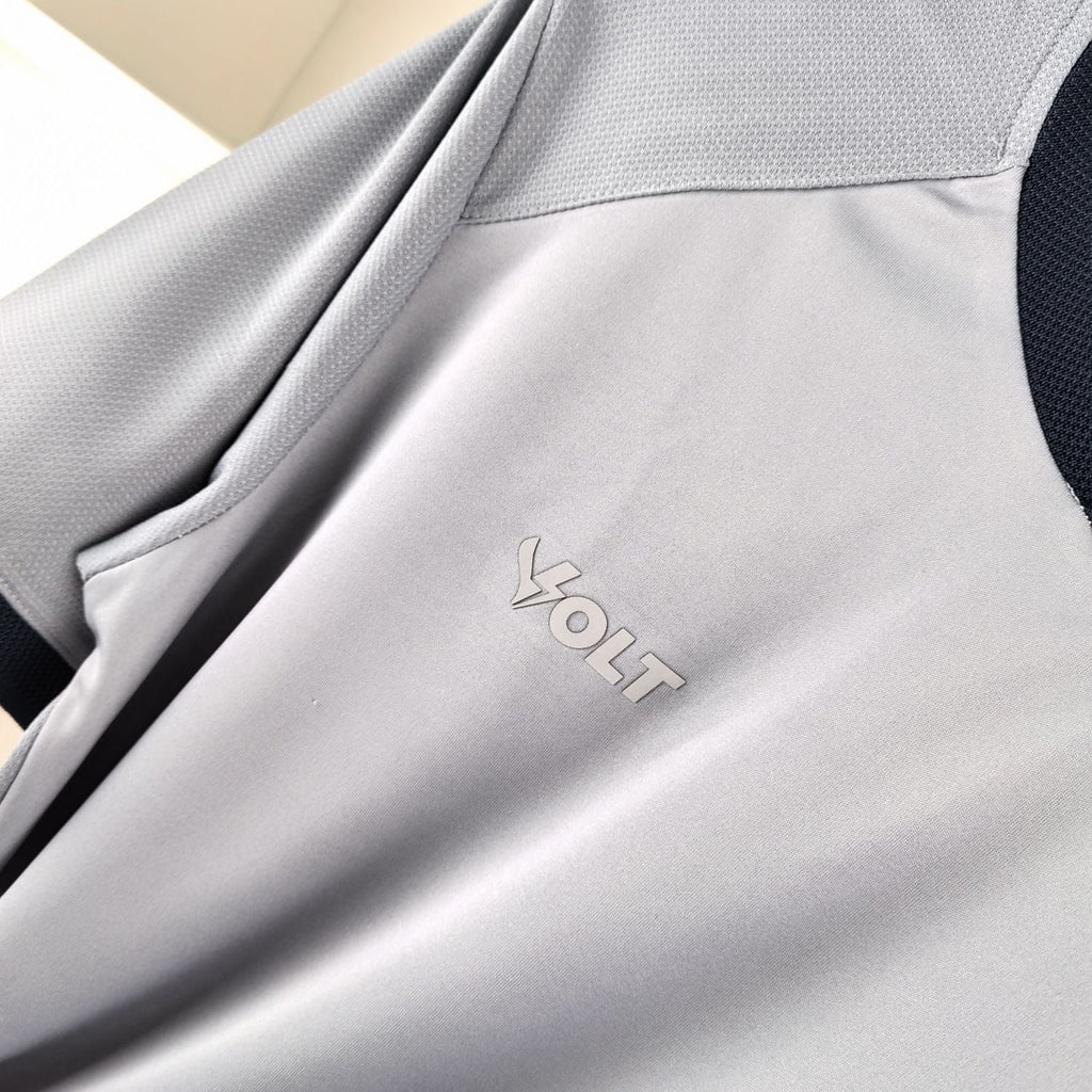 Cinza Volt predomina na camisa, cor que emana força e imponência, como as nuvens carregadas que anunciam a tempestade que se aproxima dos adversários.