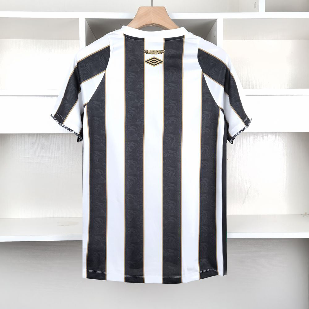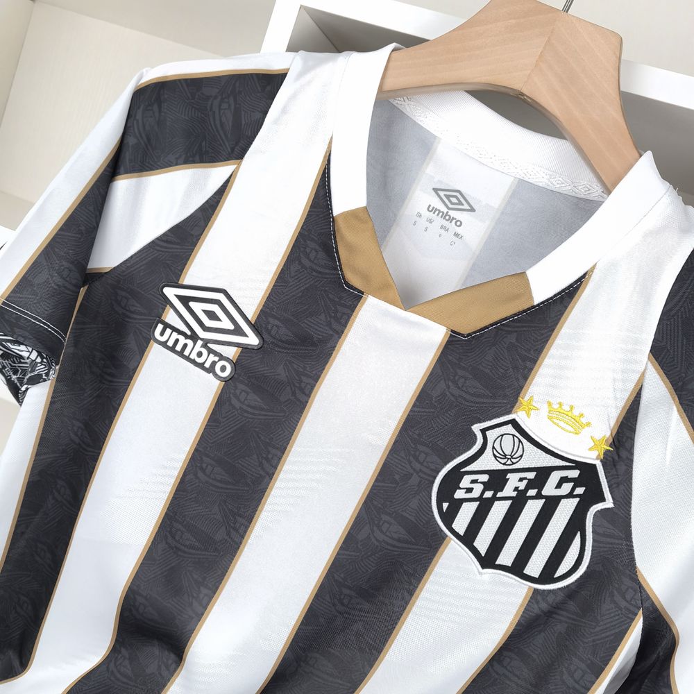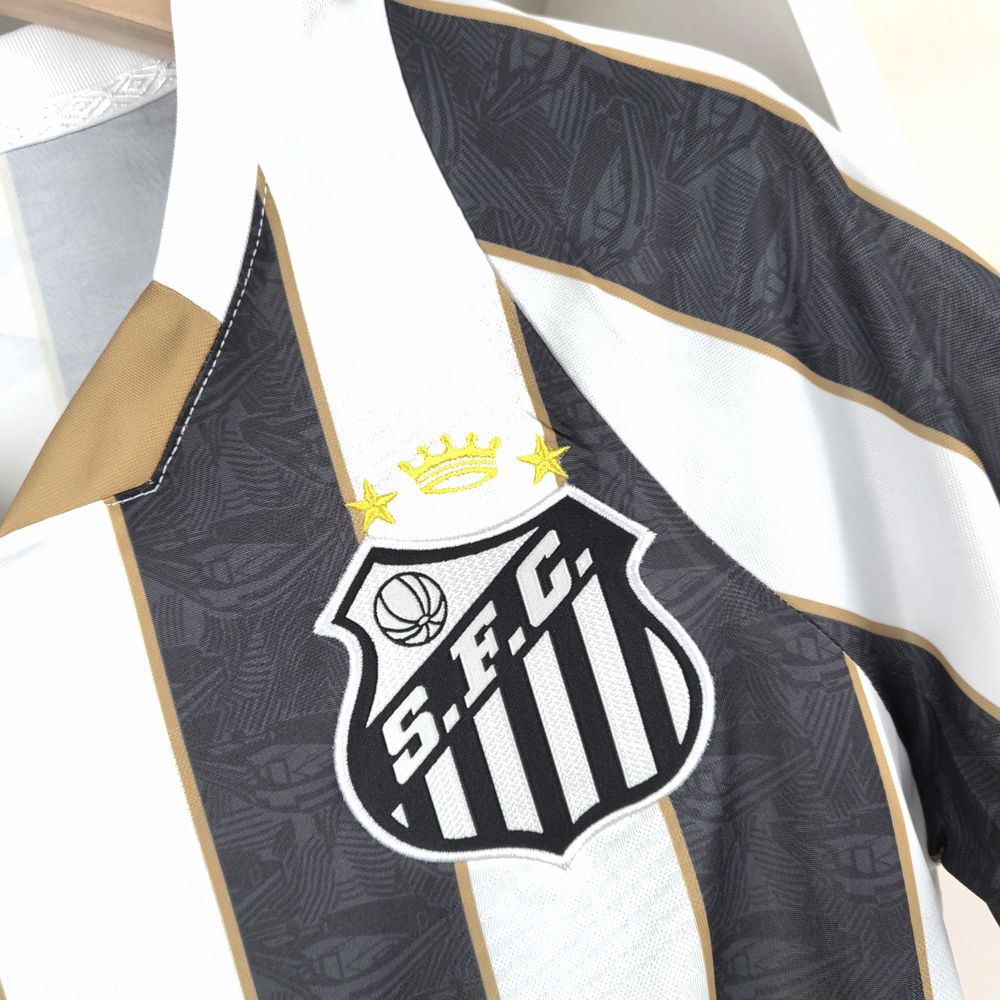 Com a Camisa 2 do Santos 2024 Torcedor Masculina, você veste as cores do Peixe com estilo e conforto. O modelo traz o design das clássicas faixas preta e branca, com detalhes em dourado na gola, e elementos gráficos que homenageiam a Vila Belmiro. A peça é produzida em poliéster e elastano, garantindo qualidade e durabilidade.