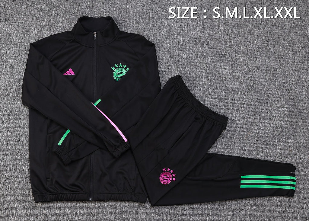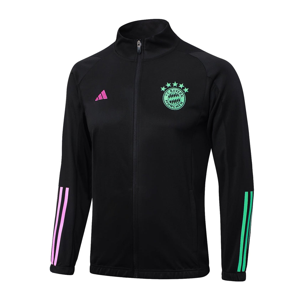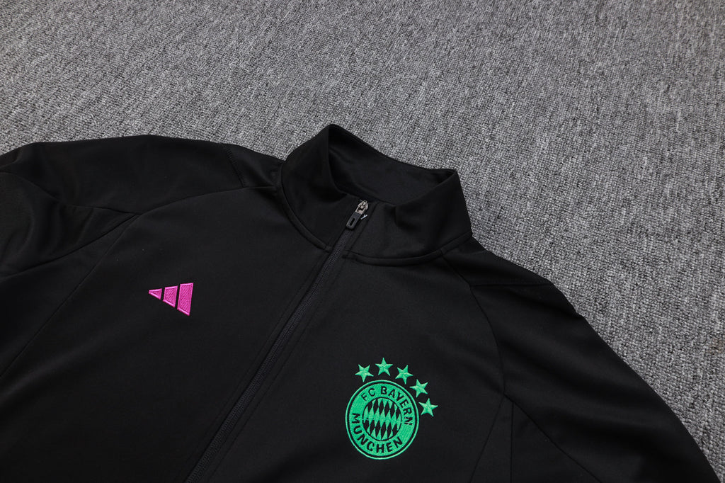 O Agasalho Bayern de Munique 2023/24 é a escolha perfeita para os fãs do gigante bávaro que buscam conforto e desempenho tanto nos treinos quanto no dia a dia. Com um design elegante e totalmente preto, o conjunto apresenta detalhes em rosa e verde, incluindo o icónico escudo do FC Bayern Munique bordado no peito e na perna, juntamente com o logótipo da Adidas, garantindo autenticidade. A jaqueta vem com fecho de zíper completo, ideal para regular o conforto durante os exercícios, enquanto os bolsos laterais oferecem praticidade. As calças, com ajuste confortável e cintura elástica, são projetadas para proporcionar liberdade de movimento, sendo perfeitas para qualquer atividade física. Fabricado com tecnologia AEROREADY da Adidas, este agasalho ajuda a manter o corpo seco e confortável, absorvendo a umidade.
