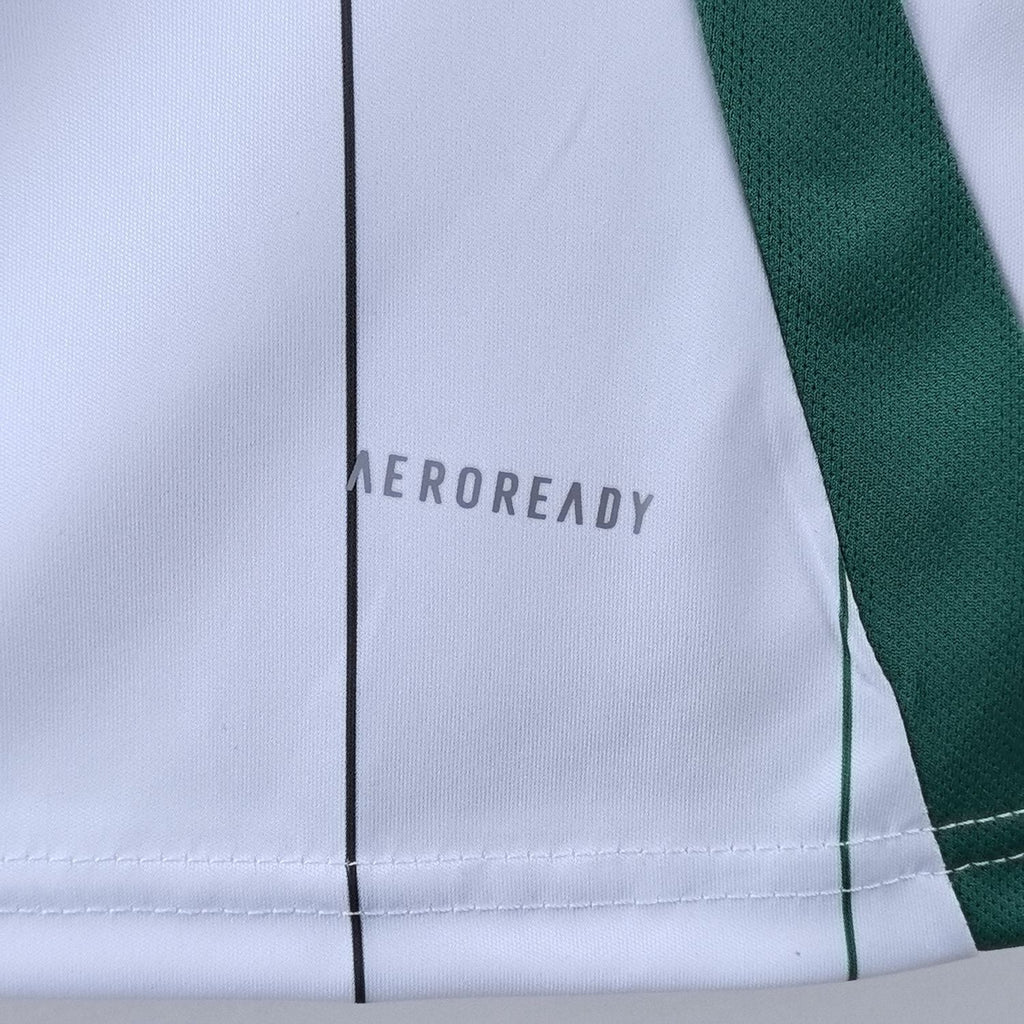 O uniforme é feito em poliéster, com o escudo bordado e tecnologia que ajuda a manter a pele fresca e seca durante o uso. Além da camisa, o conjunto completo inclui calções pretos e meias verdes (opcionalmente, em branco)