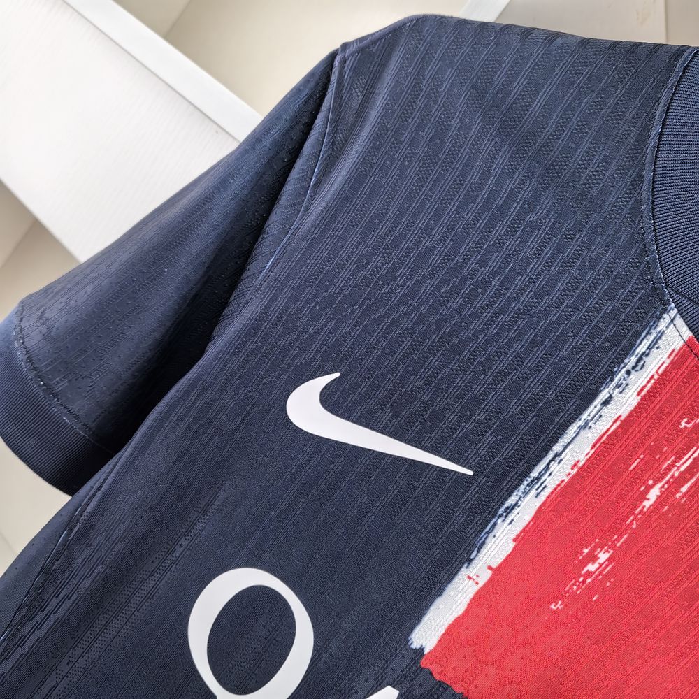 O kit principal do PSG para a temporada 2024-2025 oferece uma interpretação moderna da tradicional camisa Hechter. Inspirada na arte urbana que permeia a Grande Paris, esta nova camisa apresenta a icônica faixa vermelha central cercada por finas linhas brancas, reinterpretadas e desenhadas com um traço rápido, semelhante a pinceladas. Um aceno original que reflete perfeitamente a identidade disruptiva do clube parisiense, reconhecido como o clube da nova geração. A camisa apresenta a inovadora tecnologia Dri-FIT ADV, o novo padrão de alto desempenho da Nike para roupas de desempenho. Ela foi projetada por meio de pesquisas aprofundadas conduzidas no Nike Sport Research Lab (NSRL) em Beaverton, Estados Unidos, usando tecnologias avançadas de mapeamento corporal, incluindo entrada de dados 4D e métodos computacionais. Por meio do trabalho realizado para otimizar a mobilidade, a respirabilidade e a ventilação, a textura e o design da camisa 2024-2025 fornecem aos jogadores parisienses as condições necessárias para aprimorar sua experiência e ajudá-los a brilhar em todas as competições.