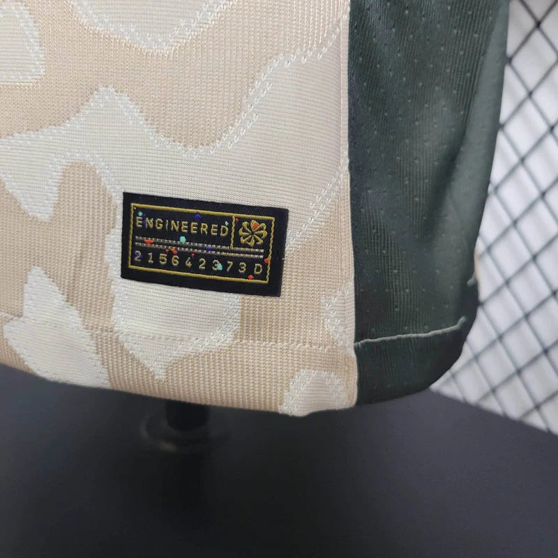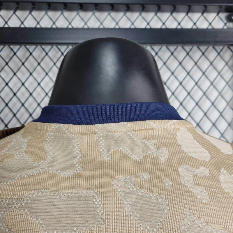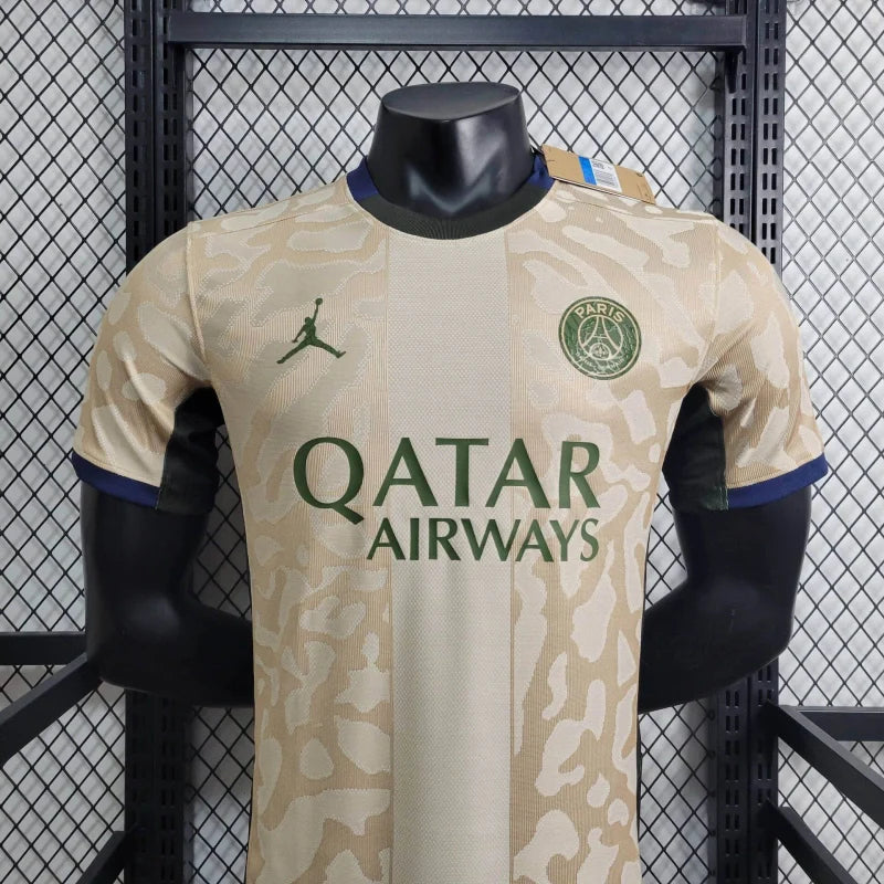 A Camisa 4 Paris Saint-Germain 2023/24 Jogador, desenvolvida pela Jordan Brand, representa uma fusão entre inovação e tradição, marcando a segunda vez na história do clube que o icônico padrão "Elephant Print" é incorporado a um uniforme de jogo .