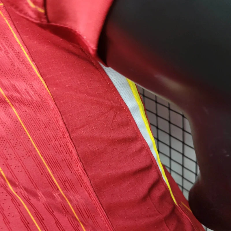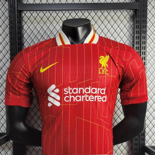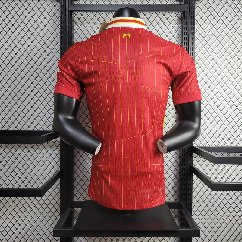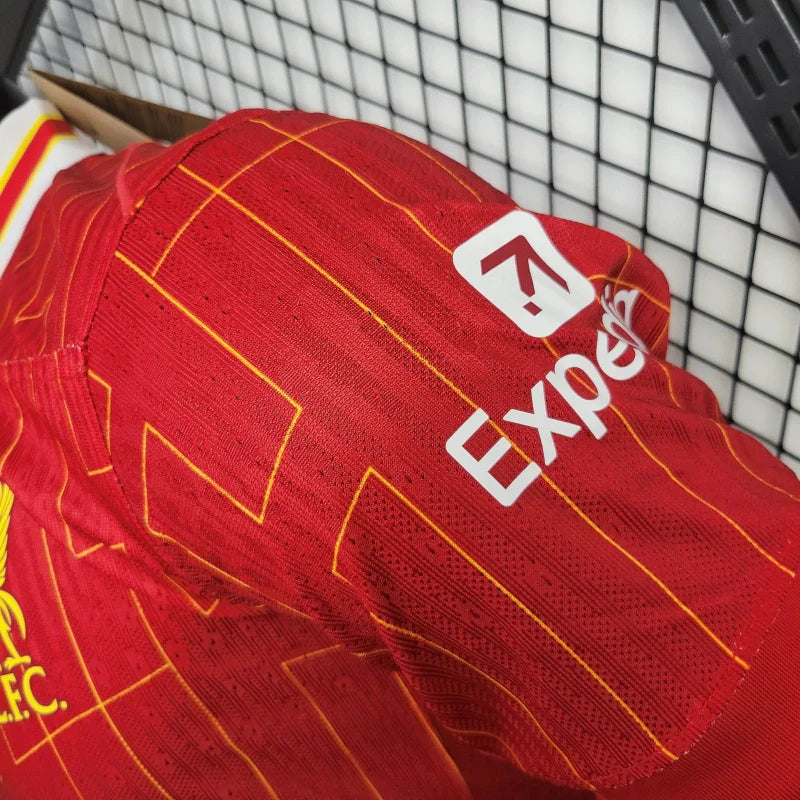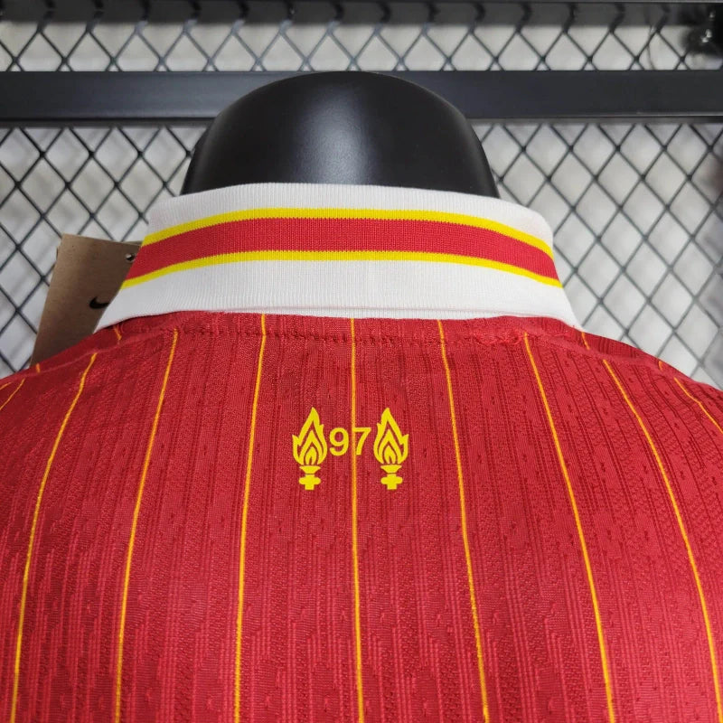 O Liverpool FC tem orgulho de revelar a nova camisa titular masculina Nike 24/25 do LFC para a temporada 2024/25. Nossa linha Match tem um design autêntico, o mesmo visual usado pelos jogadores em campo. O design com padrão amarelo cromado traz uma versão modernizada da lendária camisa titular de 84, temporada em que os Reds se tornaram campeões europeus pela quarta vez em Roma e o primeiro clube inglês a ganhar uma tríplice coroa de grandes honrarias. Cada camisa apresenta uma seção diferente de uma estampa geral inspirada na YNWA, para formar a estampa abstrata inspirada na nossa lendária camisa titular dos anos 84.
