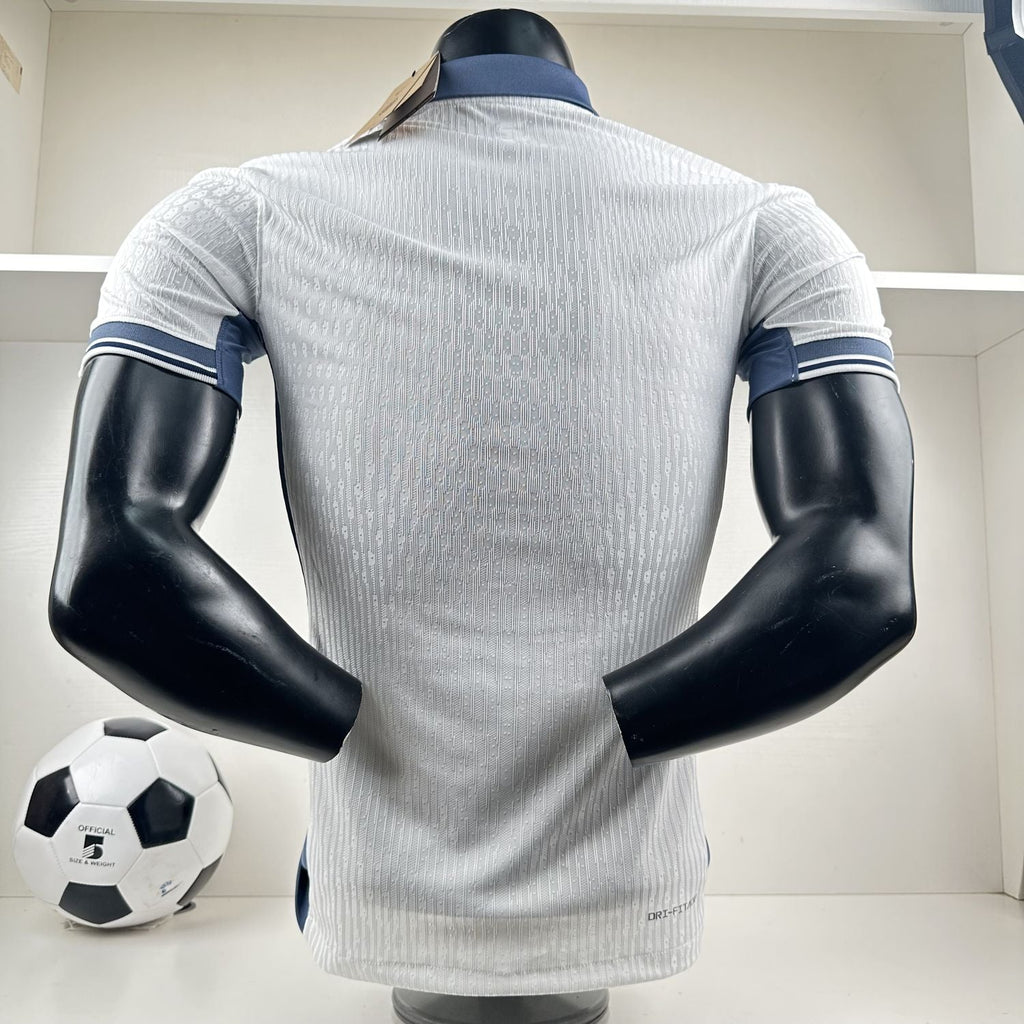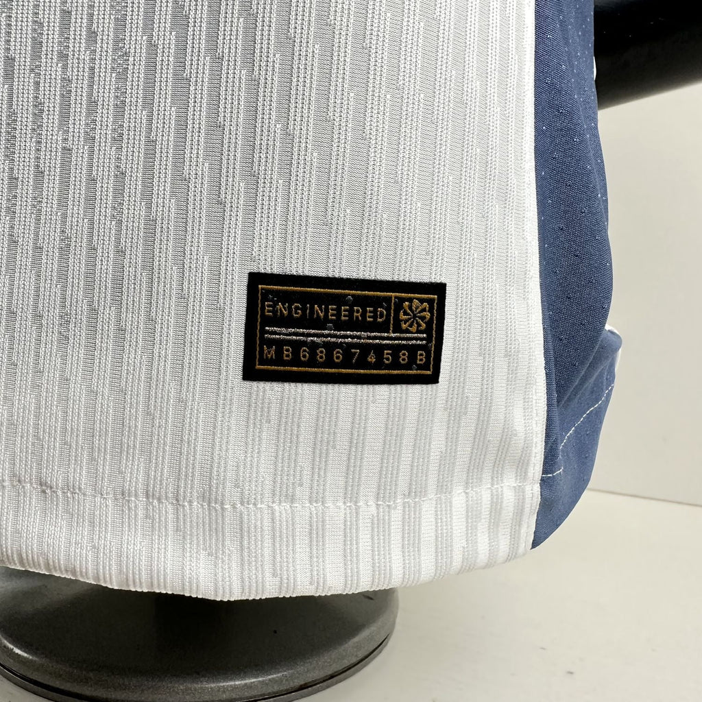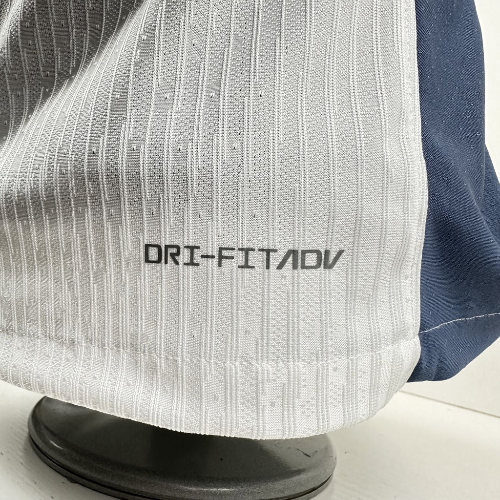A Camisa 2 da Inter de Milão 2024/25, versão jogador, apresenta um design inovador que destaca a segunda estrela sobre o escudo do clube, celebrando as conquistas históricas. O modelo combina o tecido Nike Dri-FIT ADV, que auxilia no controle da umidade, com um ajuste específico para performance, garantindo conforto máximo durante os jogos. Sua cor predominante é o branco "Summit White" com detalhes sutis em azul e elementos inspirados no moderno estilo de Milão​.