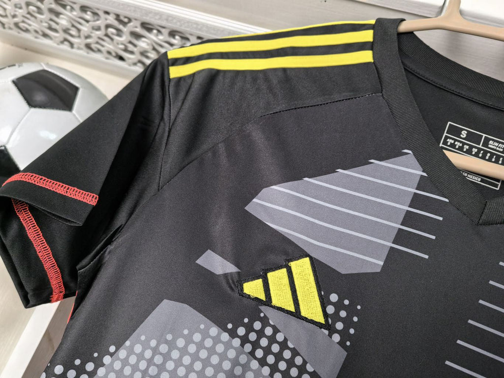 A camisola do goleiro México 24/25 da Adidas foi desenhada para destacar o desempenho em campo. Inspirada no tradicional brasão de armas mexicano, a camisola apresenta gráficos estilizados que remetem à pele de cobra, adicionando um visual único e distintivo.