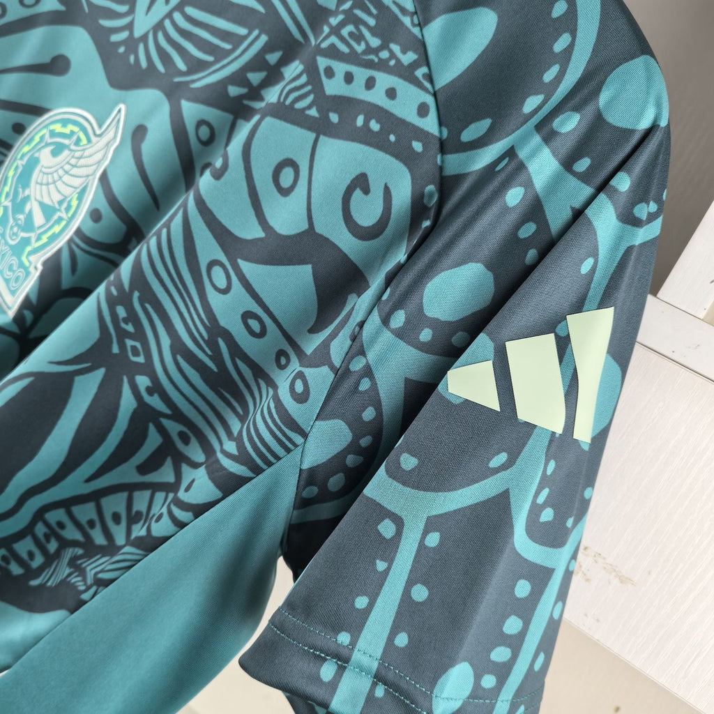 A estampa inspirada nos uniformes oficiais adiciona um toque especial a esta camisa adidas do México. Com penas de águia nos ombros e cabeça de cobra no peito, é a camisa que os jogadores usam quando estão se preparando para a ação começar. O tecido AEROREADY controla a umidade, mantendo você confortável nos aquecimentos intensos, e o escudo centralizado mostra sua lealdade ao futebol.