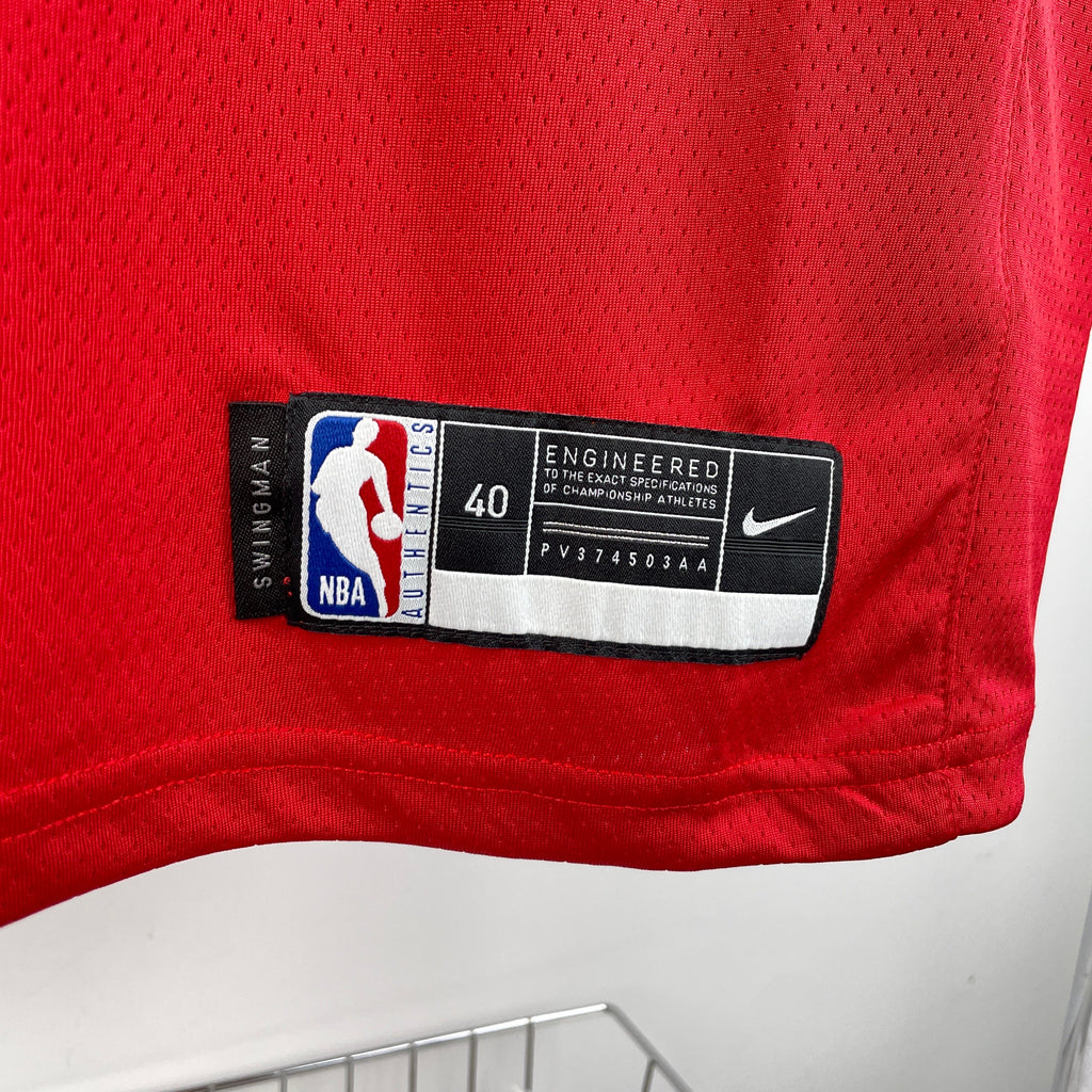 A Regata Houston Rockets Vermelha Swingman 2018/19 - Icon Edition é uma peça essencial para os fãs do time. Com o design oficial da temporada 2018/19, essa regata apresenta o icônico vermelho dos Rockets, com detalhes em branco e cinza, e o logotipo da equipe no peito. Feita com tecido de alta qualidade e tecnologia Dri-FIT, que mantém o corpo seco e confortável, essa regata é ideal tanto para torcer quanto para usar no dia a dia. O corte é moderno e ajustado, garantindo liberdade de movimento. Vista-se como um verdadeiro torcedor com a Regata Houston Rockets Vermelha Swingman - Icon Edition!