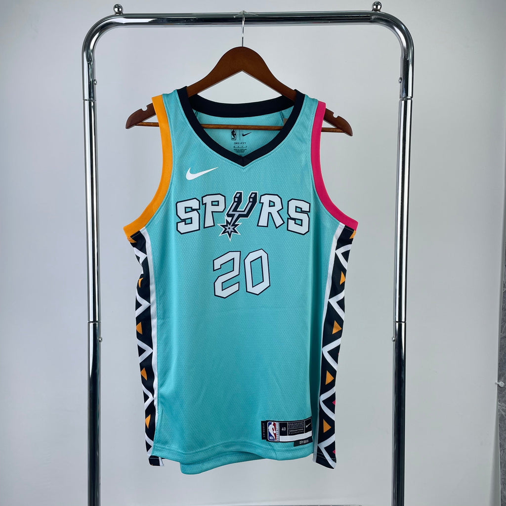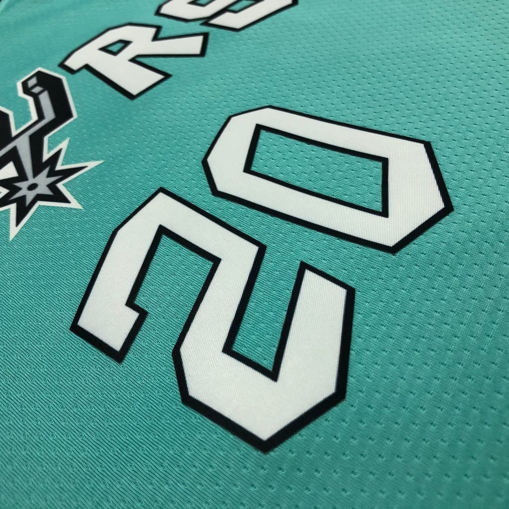 A regata San Antonio Spurs Verde Swingman 2022/23 - City Edition, produzida pela Nike, destaca-se pela sua cor verde vibrante, uma homenagem aos anos 90 da franquia. Este modelo foi projetado para capturar a essência das edições especiais da cidade, trazendo um toque de nostalgia com um design moderno.