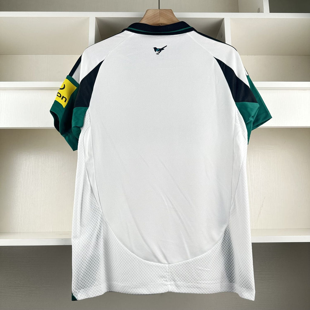 A Camisa 3 do Newcastle United para a temporada 2024/25, fabricada pela adidas, apresenta um design que combina elementos nostálgicos e modernos. Inspirada no equipamento alternativo da temporada 1999/2000, esta camisola tem um fundo branco minimalista com detalhes vibrantes em verde menta nos painéis laterais e nas mangas. Além disso, destaca-se pelo uso de um emblema vintage do clube, inspirado na década de 1980.