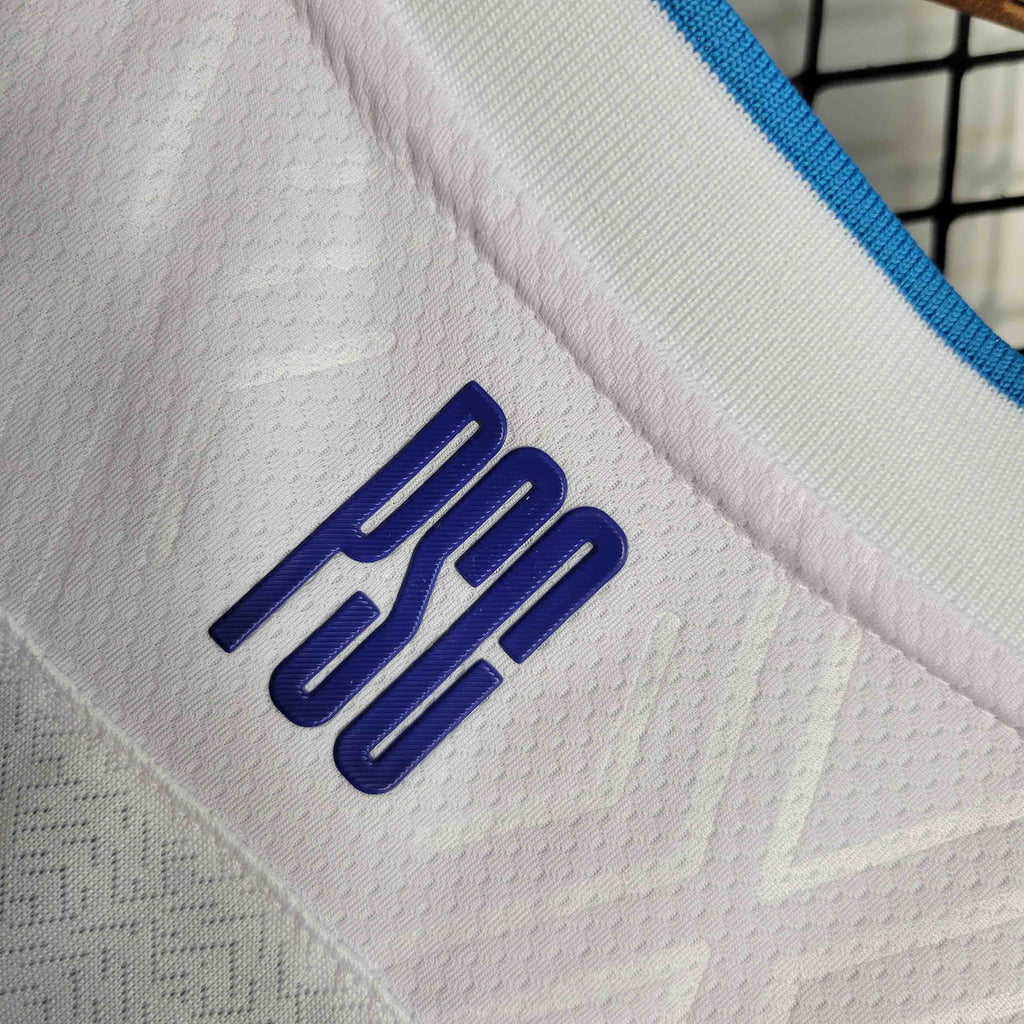 A Camisa 1 do Paysandu para a temporada 2023/2024 é predominantemente branca, com três listras verticais em azul celeste na parte frontal. A gola é branca, com detalhes em azul celeste, e as mangas seguem o padrão branco com detalhes em azul. O tecido é leve e respirável, proporcionando conforto tanto para a prática esportiva quanto para uso casual.