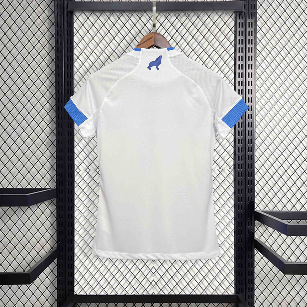 A camisa 2 do Paysandu Sport Club para a temporada 2024/2025 é uma verdadeira homenagem à tradição e à modernidade, unindo o legado do clube com elementos contemporâneos. O modelo apresenta um design predominantemente branco, com detalhes em azul celeste que remetem às cores icônicas do clube. Linhas geométricas sutis no tecido destacam um padrão inspirado nos traços culturais e naturais da região amazônica, reforçando o orgulho de ser um clube da Amazônia.