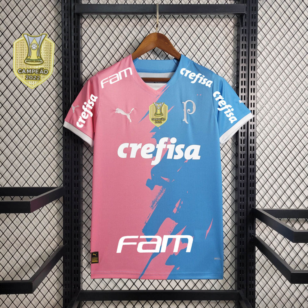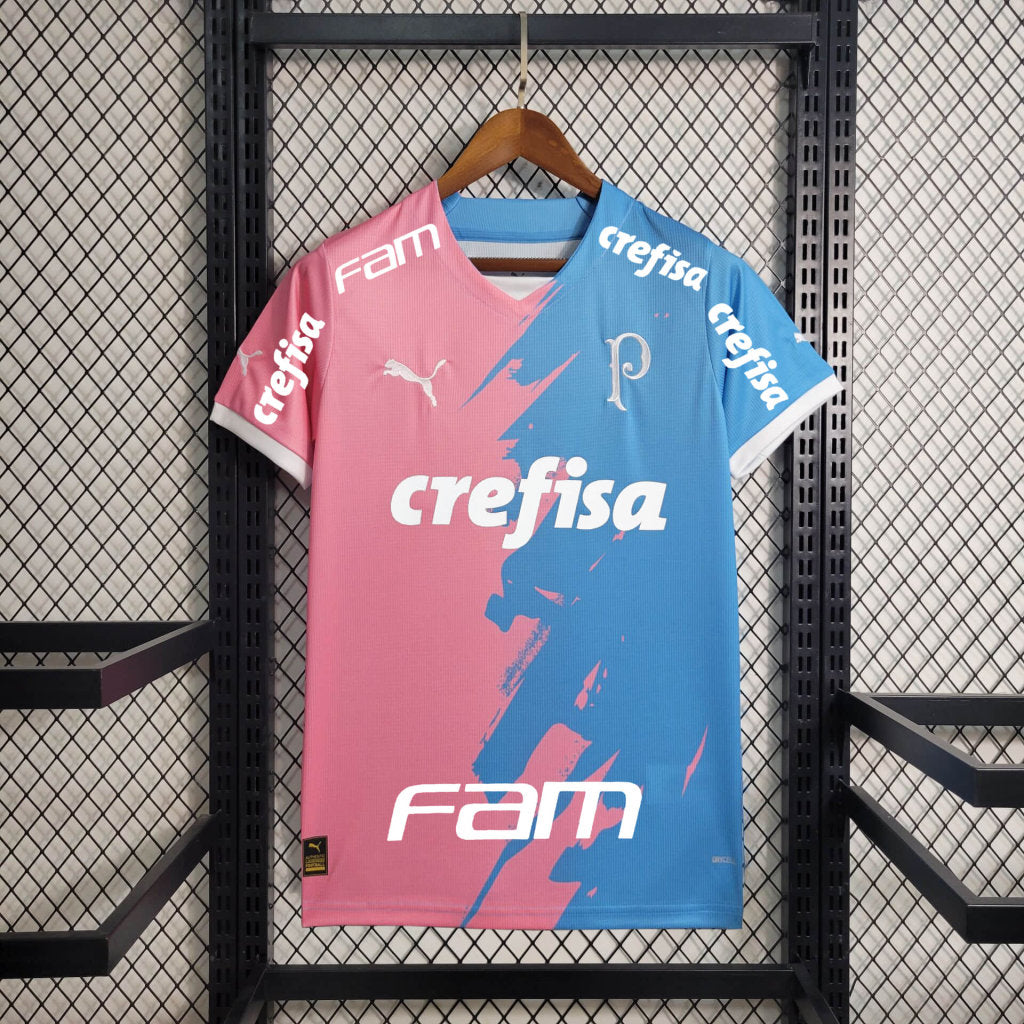 O design da camisa é dividido em duas partes: o lado direito em rosa e o esquerdo em azul, separados por pinceladas que simbolizam a união das duas causas. O escudo tradicional do clube foi substituído pelo "P" estilizado, e os logos da PUMA e dos patrocinadores aparecem em branco. Nas costas, há a inscrição "Por Um Futuro Mais Verde".
