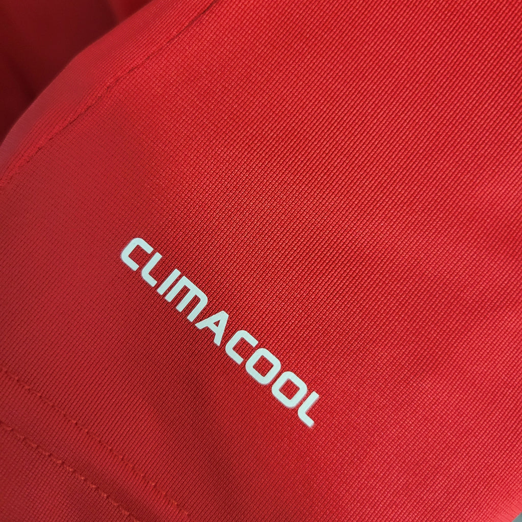 A terceira camisa do Real Madrid na temporada 2011/12, fabricada pela Adidas, destaca-se por seu design arrojado e distinto. Predominantemente vermelha, uma cor pouco usual nos uniformes do clube, ela apresenta detalhes em branco, incluindo as icônicas três listras da Adidas nos ombros e o logotipo do patrocinador "bwin" na parte frontal. O escudo do Real Madrid está posicionado no lado esquerdo do peito, enquanto o logotipo da Adidas está à direita. Este uniforme foi utilizado em partidas específicas durante a temporada, especialmente em jogos fora de casa na UEFA Champions League.