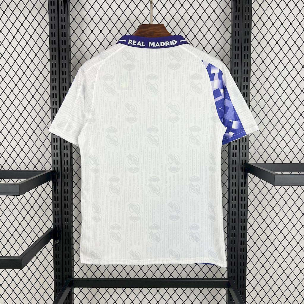A Camisa III do Real Madrid da temporada 1996/97 é uma peça icônica para os fãs do clube. Desenvolvida pela Kelme, apresenta um design distinto em branco e lilás, com o patrocínio da Teka estampado na frente. O tecido brilhante e reluzente reflete o estilo da época, tornando-a uma peça desejada por colecionadores e entusiastas do futebol retrô.