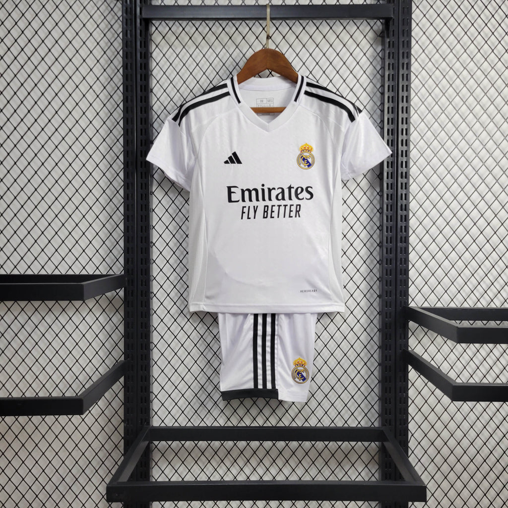 O Conjunto Infantil 1 do Real Madrid 2024/25 é perfeito para os pequenos fãs que querem mostrar sua paixão pelo clube desde cedo. Inspirado no uniforme principal usado pelos jogadores em jogos no Santiago Bernabéu, este conjunto é uma combinação de conforto, estilo e tradição.