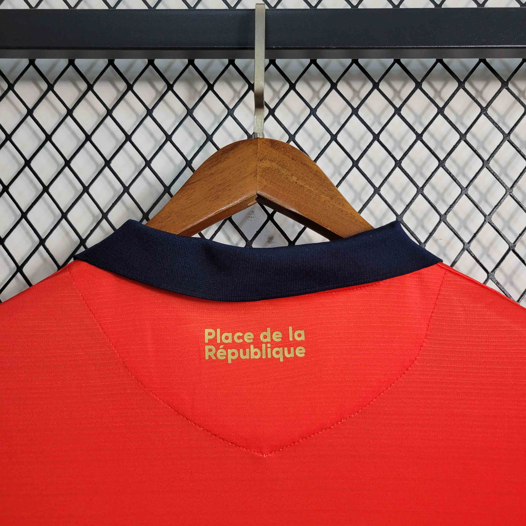 A Camisa de Goleiro 2 do Clube do Remo 2023, popularmente conhecida como "La Naranja", destaca-se por sua cor laranja vibrante, simbolizando a energia e a determinação dos atletas em campo. Este uniforme presta homenagem à Praça da República, um marco histórico de Belém, refletindo a rica herança cultural da cidade. Atrás do escudo, há um desenho sublimado do monumento, e nas costas, um patch especial com a inscrição "Place de La République". A gola estilo polo confere um toque clássico, enquanto o escudo do Remo é bordado e o logotipo da fornecedora aparece em 3D. Confeccionada com tecido Jacquard belga e tecnologia Dry-Ray, a camisa oferece conforto térmico e proteção contra raios solares, sendo ideal para a prática esportiva de alto rendimento.