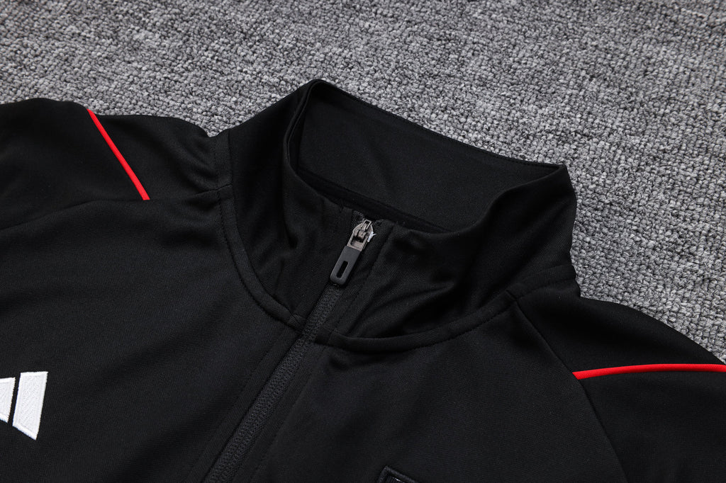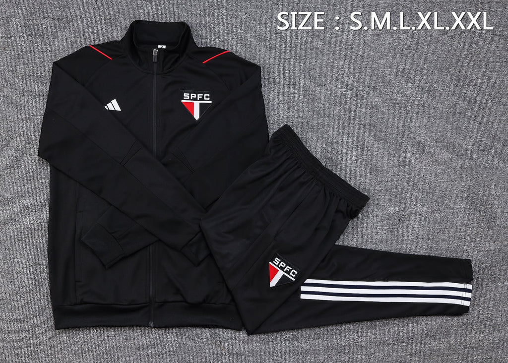 O Agasalho São Paulo FC 2023/24 é a escolha perfeita para os torcedores tricolores que buscam um visual moderno e confortável, seja para treinos ou uso casual. Com um design elegante em preto, o agasalho destaca o escudo icônico do São Paulo FC bordado no peito e na perna, conferindo autenticidade ao produto. As clássicas três listras da Adidas aparecem em branco nas mangas, refletindo as cores tradicionais do clube. A jaqueta possui fecho em zíper completo e bolsos laterais para maior praticidade. As calças oferecem ajuste confortável com elástico na cintura, garantindo mobilidade e estilo em qualquer situação.