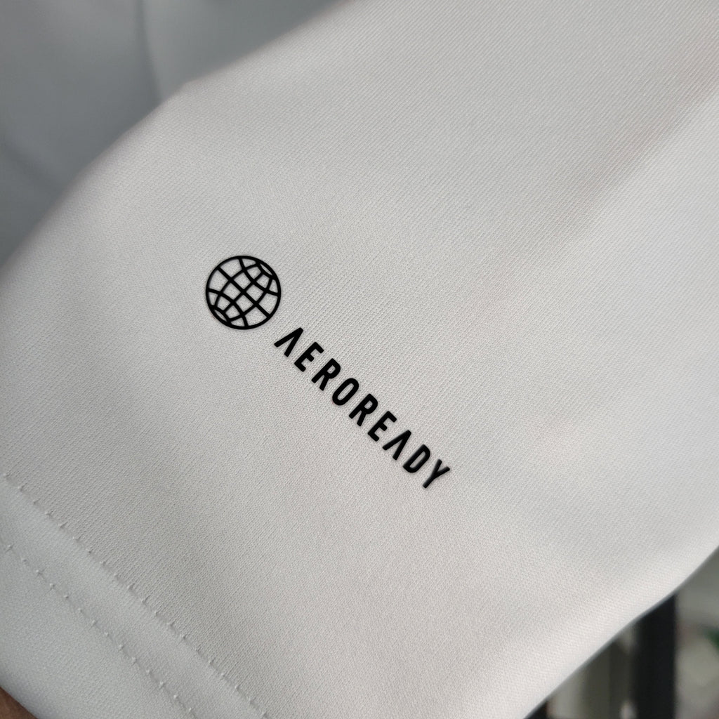 A Camisa 1 do São Paulo FC para a temporada 2023/2024, produzida pela Adidas, destaca-se por seu design que honra a tradição do clube. O modelo apresenta a clássica faixa tricolor horizontal no peito, que se estende por todo o comprimento da camisa, incluindo as costas, atendendo a um antigo desejo dos torcedores. O escudo do São Paulo FC está centralizado sobre as listras, enquanto o logotipo da Adidas aparece em preto no lado direito do peito. A gola é careca e canelada, proporcionando conforto e um ajuste seguro. As mangas curtas possuem punhos canelados, e a barra traseira é ligeiramente alongada para um caimento moderno. Além disso, a inscrição "São Paulo FC" está presente na parte interna da gola, adicionando um detalhe exclusivo ao uniforme.