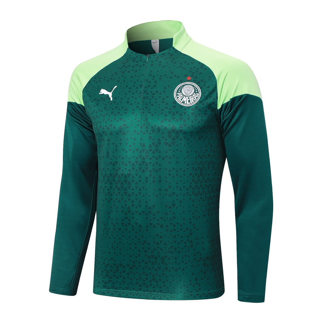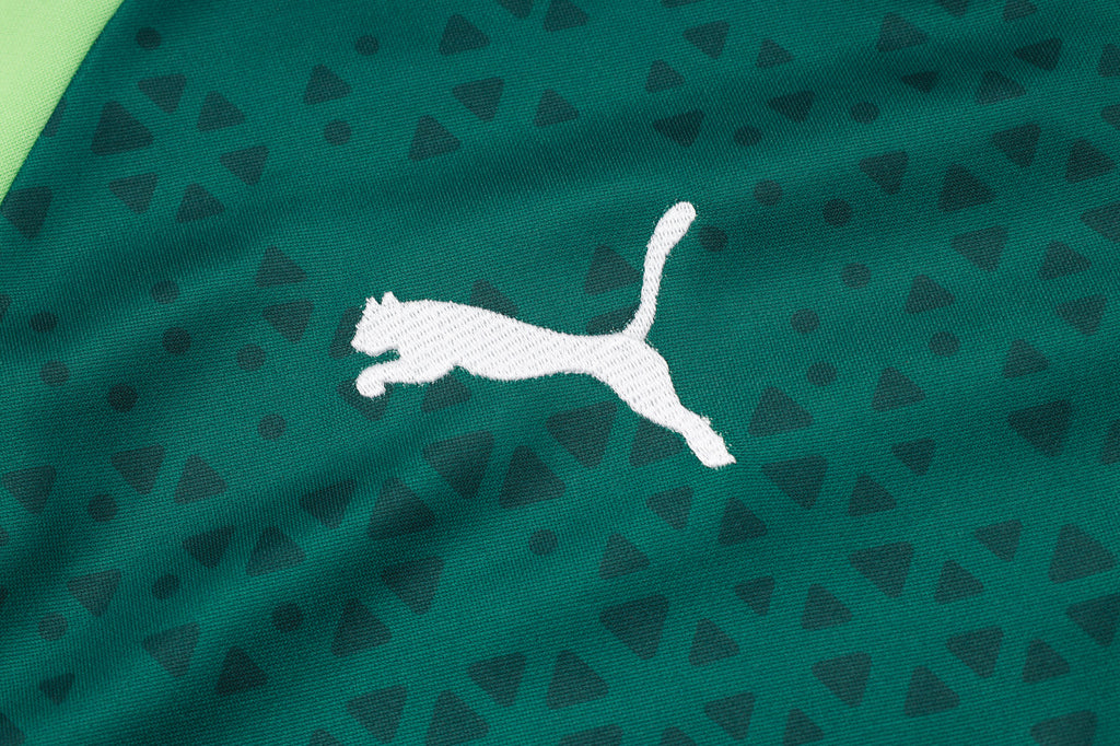 O conjunto destaca as marcas do Palmeiras e da Puma, com foco em mantê-lo seco durante o exercício, graças à tecnologia de absorção de umidade. Esse conjunto é perfeito para quem quer demonstrar seu apoio ao clube tanto em campo quanto fora dele.